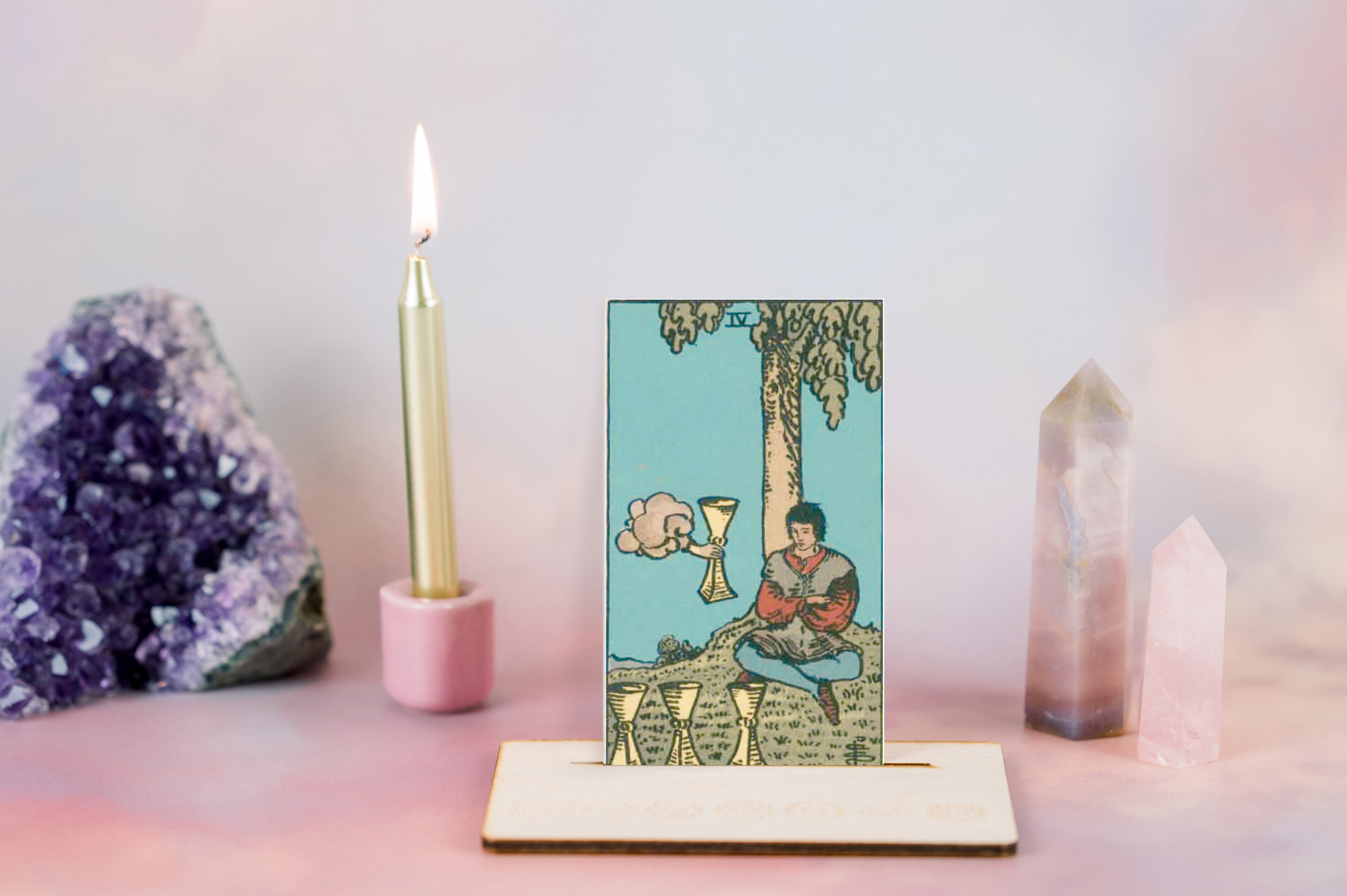 The Four of Cups is the pause where nothing feels enough. It’s detachment, disinterest, or the quiet ache of overlooking what’s right in front of you.